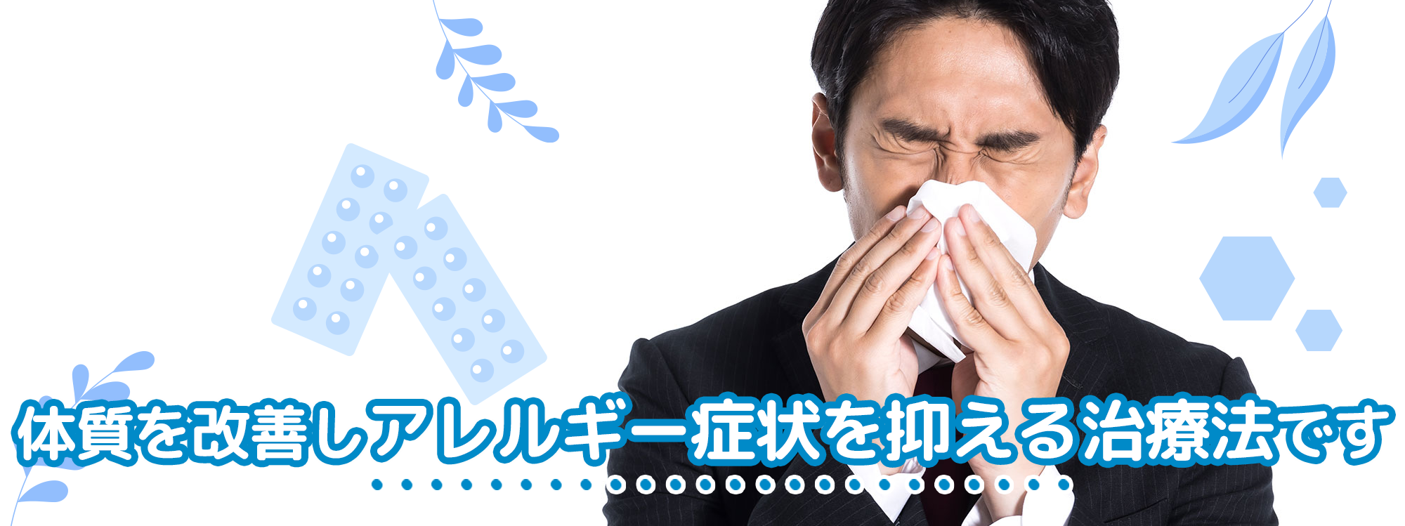 舌下免疫療法は、アレルゲン免疫療法(減感作療法)の一種で、アレルギーの原因物質(アレルゲン)を少しずつ体内に吸収させることでアレルギー反応を弱めていく治療法です。
